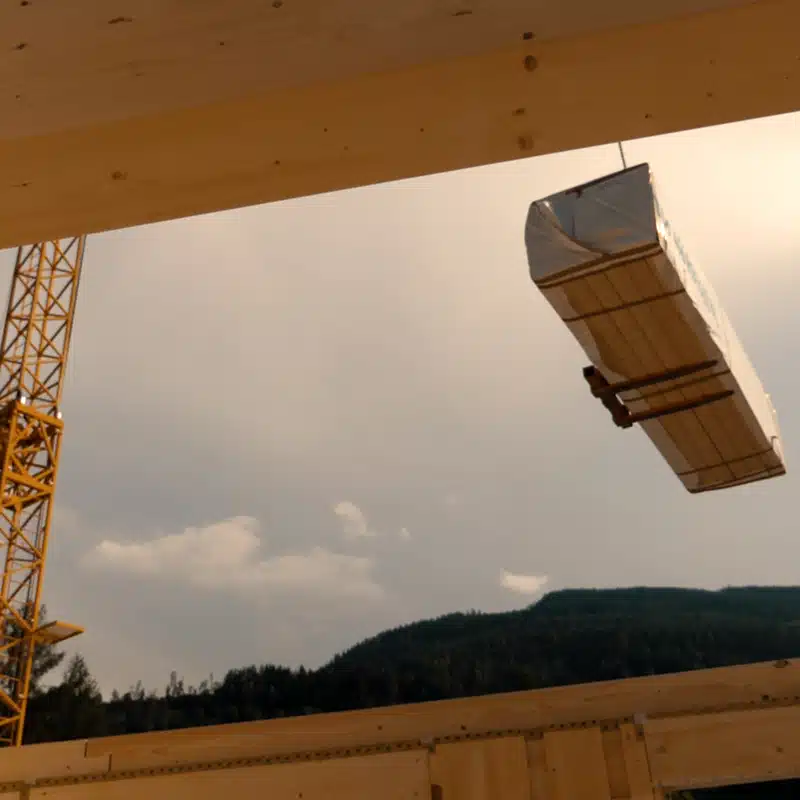 Dank computergesteuerter, präziser Vorfertigung und leichter Montage lässt sich ein Haus aus Massiv-Holz-Mauer®-Elementen in kurzer Zeit errichten. Die Wandelemente müssen nur nach Ihrer Nummerierung zusammengefügt und verschraubt werden. Aufwändiges Messen und damit verbundene Fehlerquellen werden auf ein Minimum reduziert. Für ein normales Einfamilienhaus beträgt die Montagezeit nur wenige Tage. Der Rohbau ist schnell vom eigenen Dach geschützt und alle weiteren Arbeiten könne parallel durchgeführt werden. Dies schafft Ihnen zusätzliche Planungs- und Kostensicherheit.